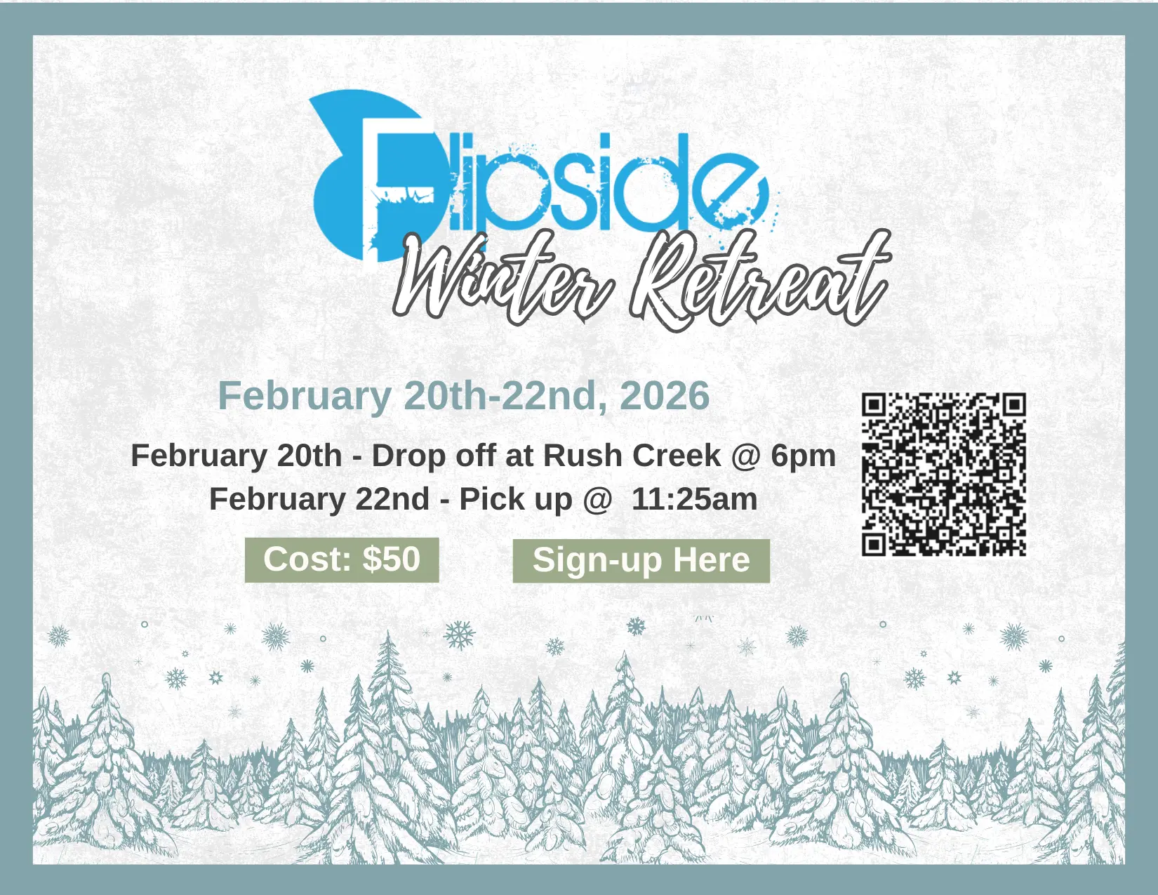 During the year Flipside meets on Sunday evenings from 5-7PM. Students will play games, eat a snack, receive a Bible lesson and participate in a small group discussion time. During the year, Flipside has various special events and activities, including retreats.